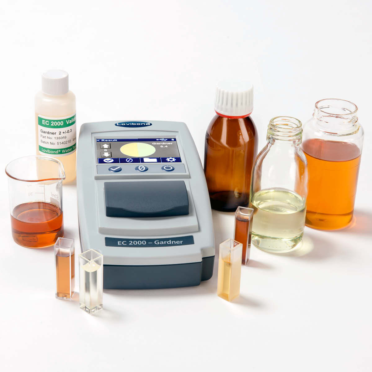 ? 全彩触摸显示屏,内置中文等多种语言界面,符合ASTM D 1544, D 6166, ISO4630-2国际方法标准规范;